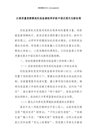【七哥公文】2025年:【七哥公文】以高质量党建锻造纪检监察铁军护航中国式现代化新征程+更多免费公文+VX:QiGeGongWen2024+更多免费公文+VX:QiGeGongWen2024