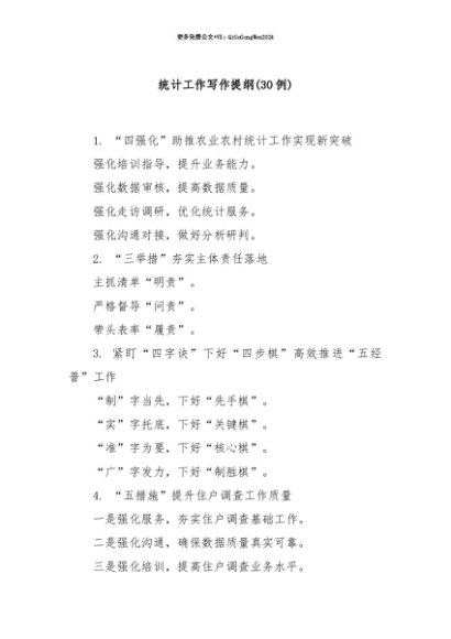 【七哥公文】2025年:【七哥公文】(30例)统计工作写作提纲+更多免费公文+VX:QiGeGongWen2024+更多免费公文+VX:QiGeGongWen2024