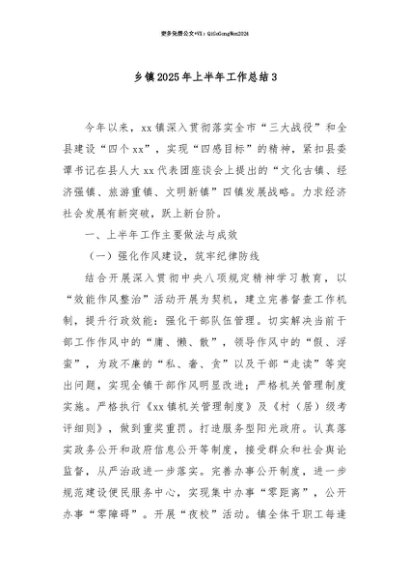 【七哥公文】2025年:【七哥公文】乡镇2025年上半年工作总结3+更多免费公文+VX:QiGeGongWen2024+更多免费公文+VX:QiGeGongWen2024