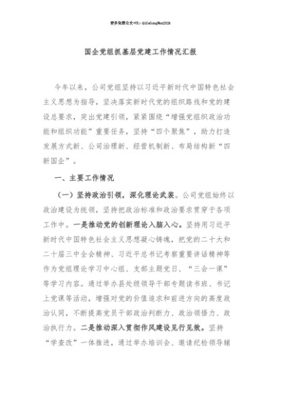 【七哥公文】2025年:【七哥公文】国企党组抓基层党建工作情况汇报+更多免费公文+VX:QiGeGongWen2024+更多免费公文+VX:QiGeGongWen2024