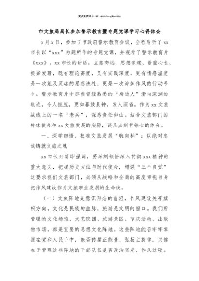 【七哥公文】2025年:【七哥公文】市文旅局局长参加警示教育暨专题党课学习心得体会+更多免费公文+VX:QiGeGongWen2024+更多免费公文+VX:QiGeGongWen2024