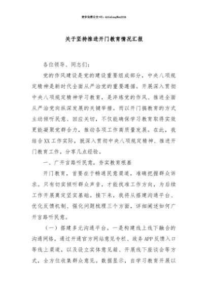 【七哥公文】2025年:【七哥公文】关于坚持推进开门教育情况汇报+更多免费公文+VX:QiGeGongWen2024+更多免费公文+VX:QiGeGongWen2024
