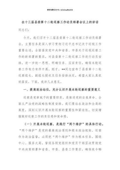 【七哥公文】2025年:【七哥公文】在十三届县委第十二轮巡察工作动员部署会议上的讲话+更多免费公文+VX:QiGeGongWen2024+更多免费公文+VX:QiGeGongWen2024