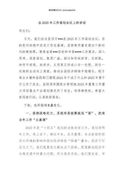 【七哥公文】2025年:【七哥公文】在2025年工作谋划会议上的讲话+更多免费公文+VX:QiGeGongWen2024+更多免费公文+VX:QiGeGongWen2024
