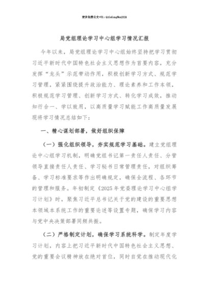 【七哥公文】2025年:【七哥公文】局党组理论学习中心组学习情况汇报+更多免费公文+VX:QiGeGongWen2024+更多免费公文+VX:QiGeGongWen2024