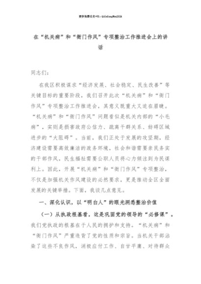 【七哥公文】2025年:【七哥公文】在“机关病”和“衙门作风”专项整治工作推进会上的讲话+更多免费公文+VX:QiGeGongWen2024+更多免费公文+VX:QiGeGongWen2024
