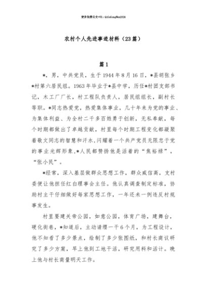 【七哥公文】2025年:【七哥公文】(23篇)农村个人先进事迹材料+更多免费公文+VX:QiGeGongWen2024+更多免费公文+VX:QiGeGongWen2024