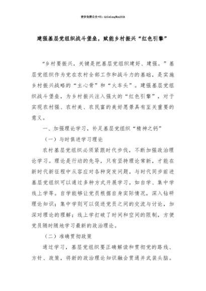 【七哥公文】2025年:【七哥公文】建强基层党组织战斗堡垒,赋能乡村振兴“红色引擎”+更多免费公文+VX:QiGeGongWen2024+更多免费公文+VX:QiGeGongWen2024