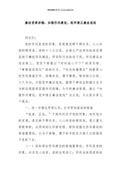 【七哥公文】2025年:【七哥公文】廉洁党课讲稿:加强作风建设,筑牢清正廉洁底线+更多免费公文+VX:QiGeGongWen2024+更多免费公文+VX:QiGeGongWen2024