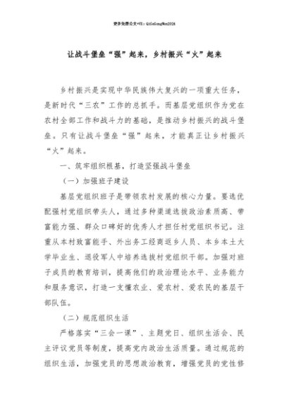 【七哥公文】2025年:【七哥公文】让战斗堡垒“强”起来,乡村振兴“火”起来+更多免费公文+VX:QiGeGongWen2024+更多免费公文+VX:QiGeGongWen2024