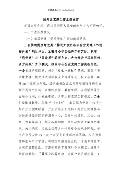 【七哥公文】2025年:【七哥公文】经开区党建工作汇报发言+更多免费公文+VX:QiGeGongWen2024+更多免费公文+VX:QiGeGongWen2024