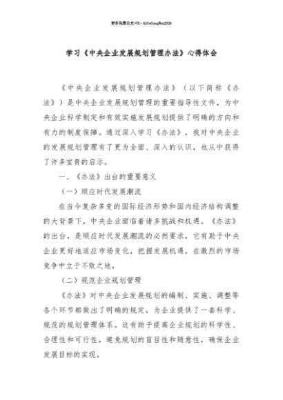 【七哥公文】2025年:【七哥公文】学习《中央企业发展规划管理办法》心得体会+更多免费公文+VX:QiGeGongWen2024+更多免费公文+VX:QiGeGongWen2024