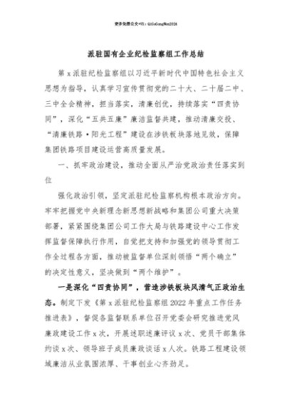【七哥公文】2025年:【七哥公文】派驻国有企业纪检监察组工作总结+更多免费公文+VX:QiGeGongWen2024+更多免费公文+VX:QiGeGongWen2024