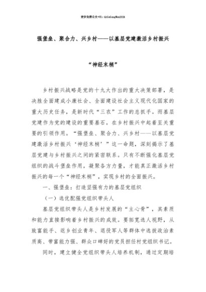 【七哥公文】2025年:【七哥公文】强堡垒、聚合力、兴乡村——以基层党建激活乡村振兴“神经末梢”+更多免费公文+VX:QiGeGongWen2024+更多免费公文+VX:QiGeGongWen2024
