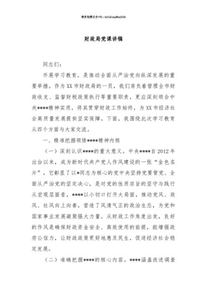 【七哥公文】2025年:【七哥公文】财政局党课讲稿+更多免费公文+VX:QiGeGongWen2024+更多免费公文+VX:QiGeGongWen2024