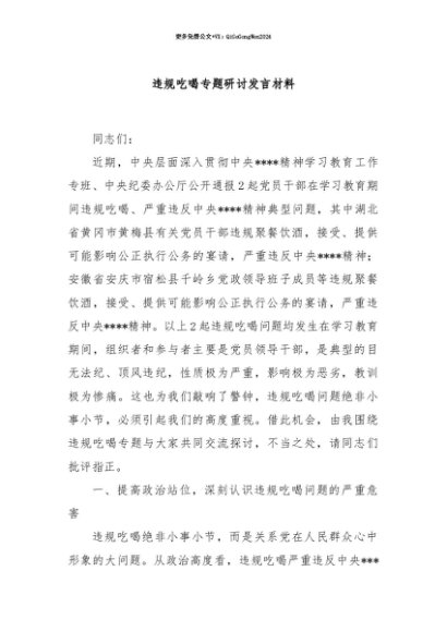 【七哥公文】2025年:【七哥公文】违规吃喝专题研讨发言材料+更多免费公文+VX:QiGeGongWen2024+更多免费公文+VX:QiGeGongWen2024