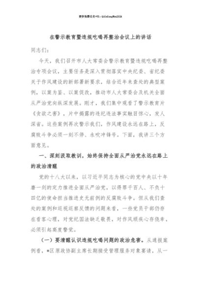 【七哥公文】2025年:【七哥公文】在警示教育暨违规吃喝再整治会议上的讲话+更多免费公文+VX:QiGeGongWen2024+更多免费公文+VX:QiGeGongWen2024