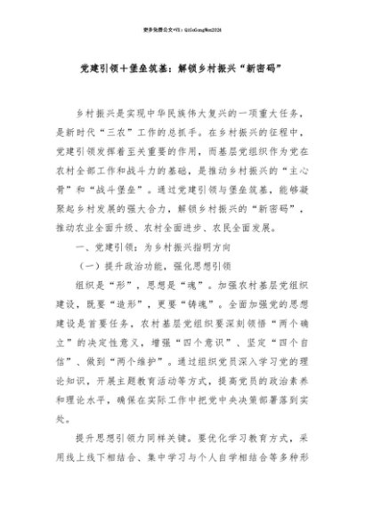 【七哥公文】2025年:【七哥公文】党建引领+堡垒筑基:解锁乡村振兴“新密码”+更多免费公文+VX:QiGeGongWen2024+更多免费公文+VX:QiGeGongWen2024