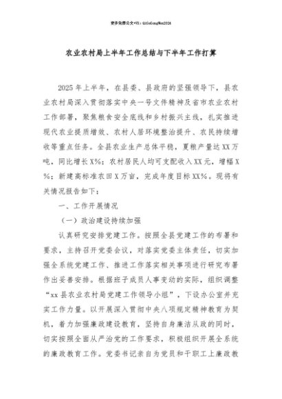 【七哥公文】2025年:【七哥公文】农业农村局上半年工作总结与下半年工作打算+更多免费公文+VX:QiGeGongWen2024+更多免费公文+VX:QiGeGongWen2024