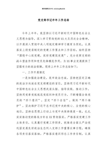 【七哥公文】2025年:【七哥公文】党支部书记半年工作总结+更多免费公文+VX:QiGeGongWen2024+更多免费公文+VX:QiGeGongWen2024