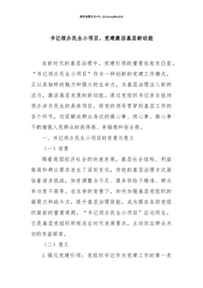 【七哥公文】2025年:【七哥公文】书记领办民生小项目,党建激活基层新动能+更多免费公文+VX:QiGeGongWen2024+更多免费公文+VX:QiGeGongWen2024