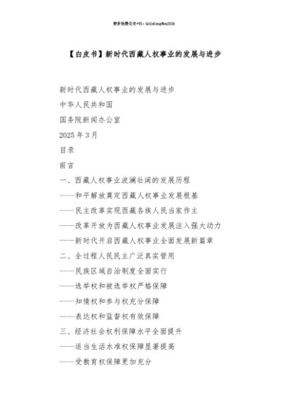【七哥公文】2025年:【七哥公文】【白皮书】新时代西藏人权事业的发展与进步+更多免费公文+VX:QiGeGongWen2024+更多免费公文+VX:QiGeGongWen2024