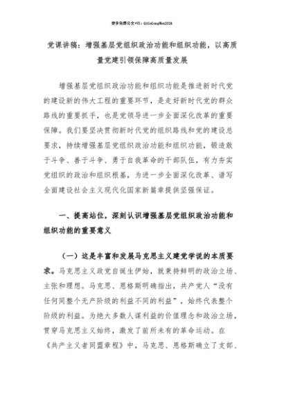 【七哥公文】2025年:【七哥公文】党课讲稿:增强基层党组织政治功能和组织功能,以高质量党建引领保障高质量发展+更多免费公文+VX:QiGeGongWen2024+更多免费公文+VX:QiGeGongWen2024