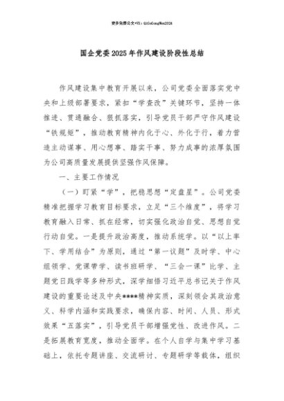 【七哥公文】2025年:【七哥公文】国企党委2025年作风建设阶段性总结+更多免费公文+VX:QiGeGongWen2024+更多免费公文+VX:QiGeGongWen2024