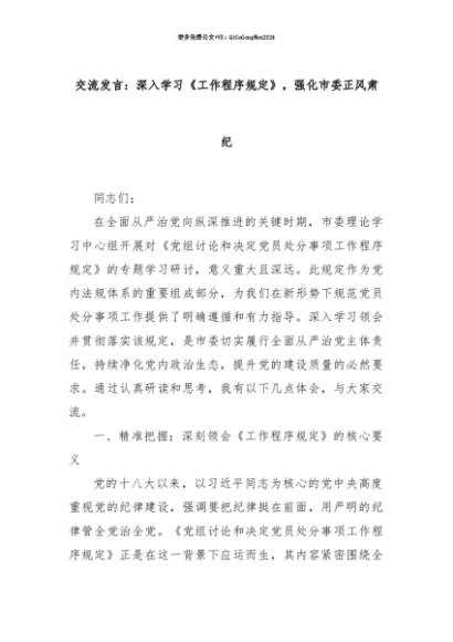 【七哥公文】2025年:【七哥公文】交流发言:深入学习《工作程序规定》,强化市委正风肃纪+更多免费公文+VX:QiGeGongWen2024+更多免费公文+VX:QiGeGongWen2024