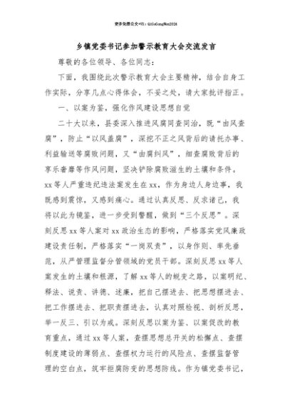【七哥公文】2025年:【七哥公文】乡镇党委书记参加警示教育大会交流发言+更多免费公文+VX:QiGeGongWen2024+更多免费公文+VX:QiGeGongWen2024