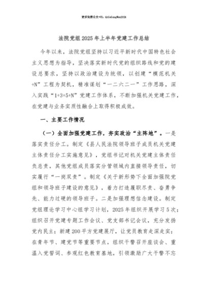【七哥公文】2025年:【七哥公文】法院党组2025年上半年党建工作总结+更多免费公文+VX:QiGeGongWen2024+更多免费公文+VX:QiGeGongWen2024
