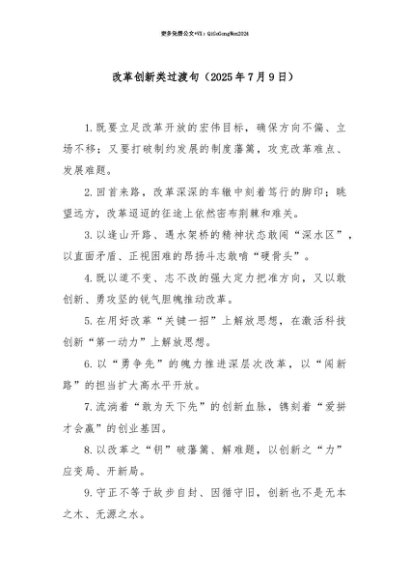 【七哥公文】2025年:【七哥公文】改革创新类过渡句(2025年7月9日)+更多免费公文+VX:QiGeGongWen2024+更多免费公文+VX:QiGeGongWen2024