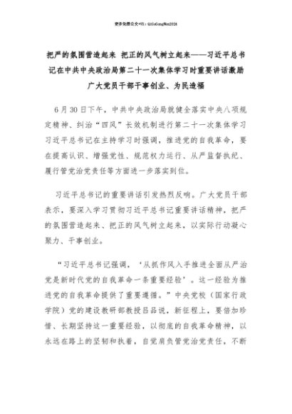 【七哥公文】2025年:【七哥公文】把严的氛围营造起来 把正的风气树立起来——习近平总书记在中共中央政治局第二十一次集体学习时重要讲话激励广大党员干部干事创业、为民造福+更多免费公文+VX:QiGeGongWen2024+更多免费公文+VX:QiGeGongWen2024