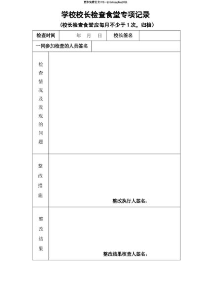 【七哥公文】2025年:【七哥公文】学校食堂各种检查记录表格表册+更多免费公文+VX:QiGeGongWen2024+更多免费公文+VX:QiGeGongWen2024