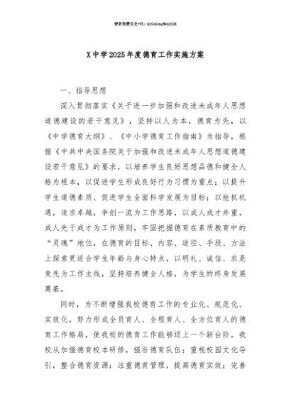 【七哥公文】2025年:【七哥公文】X中学2025年度德育工作实施方案+更多免费公文+VX:QiGeGongWen2024+更多免费公文+VX:QiGeGongWen2024