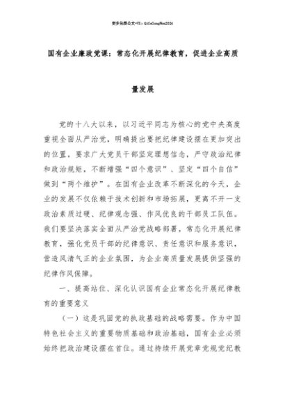 【七哥公文】2025年:【七哥公文】国有企业廉政党课:常态化开展纪律教育,促进企业高质量发展+更多免费公文+VX:QiGeGongWen2024+更多免费公文+VX:QiGeGongWen2024