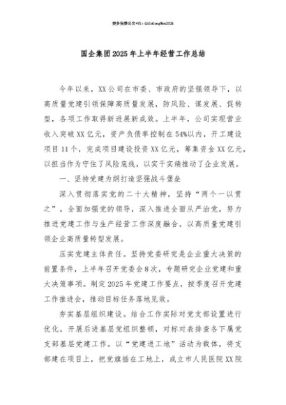 【七哥公文】2025年:【七哥公文】国企集团2025年上半年经营工作总结+更多免费公文+VX:QiGeGongWen2024+更多免费公文+VX:QiGeGongWen2024