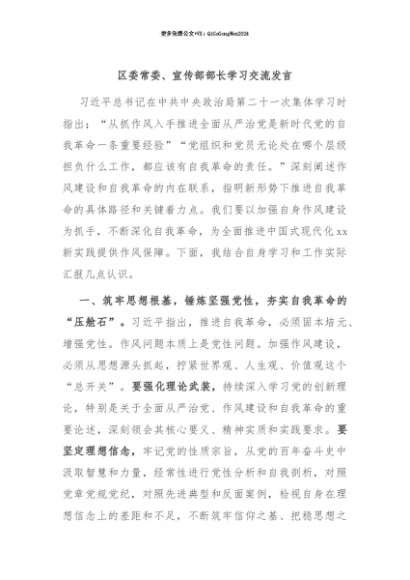 【七哥公文】2025年:【七哥公文】区委常委、宣传部部长学习交流发言+更多免费公文+VX:QiGeGongWen2024+更多免费公文+VX:QiGeGongWen2024