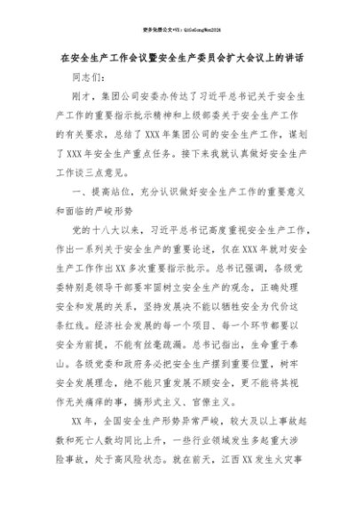 【七哥公文】2025年:【七哥公文】在安全生产工作会议暨安全生产委员会扩大会议上的讲话+更多免费公文+VX:QiGeGongWen2024+更多免费公文+VX:QiGeGongWen2024