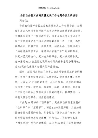 【七哥公文】2025年:【七哥公文】县长在全县工业高质量发展工作专题会议上的讲话+更多免费公文+VX:QiGeGongWen2024+更多免费公文+VX:QiGeGongWen2024