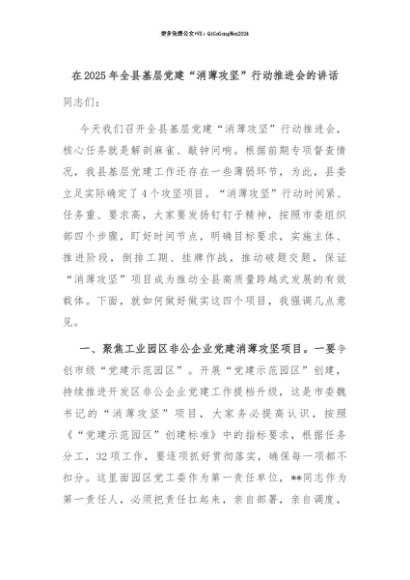 【七哥公文】2025年:【七哥公文】在2025年全县基层党建“消薄攻坚”行动推进会的讲话+更多免费公文+VX:QiGeGongWen2024+更多免费公文+VX:QiGeGongWen2024