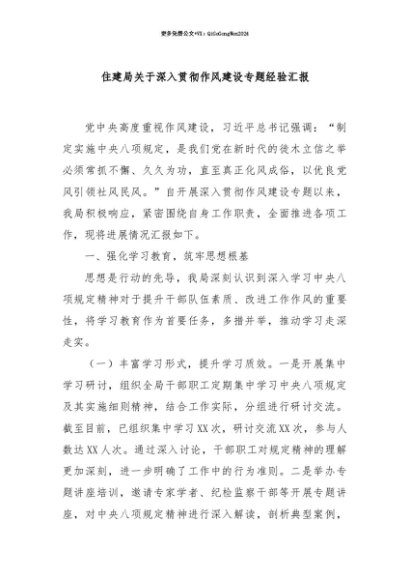 【七哥公文】2025年:【七哥公文】住建局关于深入贯彻作风建设专题经验汇报+更多免费公文+VX:QiGeGongWen2024+更多免费公文+VX:QiGeGongWen2024