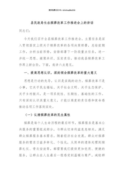 【七哥公文】2025年:【七哥公文】县民政局长在殡葬改革工作推进会上的讲话+更多免费公文+VX:QiGeGongWen2024+更多免费公文+VX:QiGeGongWen2024