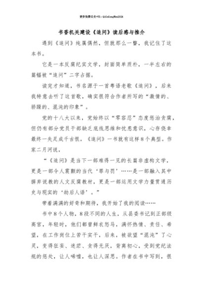 【七哥公文】2025年:【七哥公文】书香机关建设《追问》读后感与推介+更多免费公文+VX:QiGeGongWen2024+更多免费公文+VX:QiGeGongWen2024