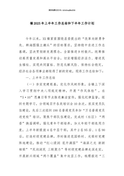 【七哥公文】2025年:【七哥公文】镇2025年上半年工作总结和下半年工作计划+更多免费公文+VX:QiGeGongWen2024+更多免费公文+VX:QiGeGongWen2024