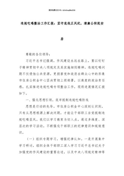 【七哥公文】2025年:【七哥公文】违规吃喝整治工作汇报:坚守底线正风纪,清廉公积筑安居+更多免费公文+VX:QiGeGongWen2024+更多免费公文+VX:QiGeGongWen2024