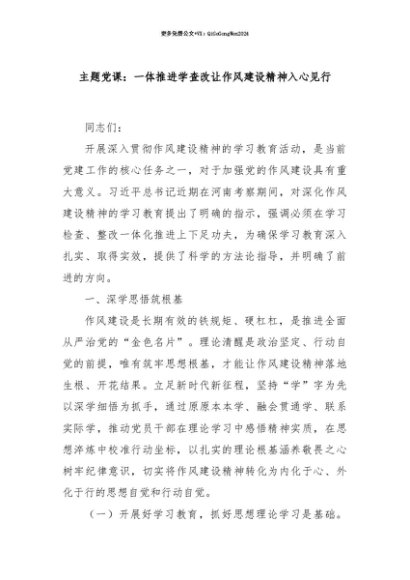 【七哥公文】2025年:【七哥公文】主题党课:一体推进学查改让作风建设精神入心见行+更多免费公文+VX:QiGeGongWen2024+更多免费公文+VX:QiGeGongWen2024