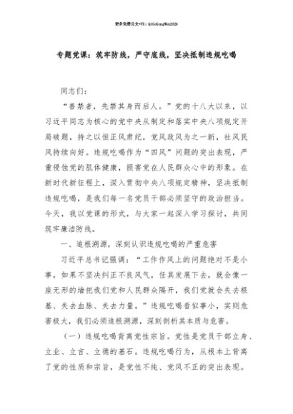 【七哥公文】2025年:【七哥公文】专题党课:筑牢防线,严守底线,坚决抵制违规吃喝+更多免费公文+VX:QiGeGongWen2024+更多免费公文+VX:QiGeGongWen2024