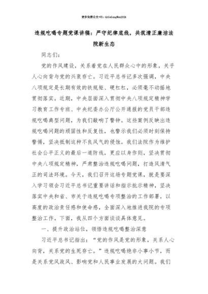 【七哥公文】2025年:【七哥公文】违规吃喝专题党课讲稿:严守纪律底线,共筑清正廉洁法院新生态+更多免费公文+VX:QiGeGongWen2024+更多免费公文+VX:QiGeGongWen2024