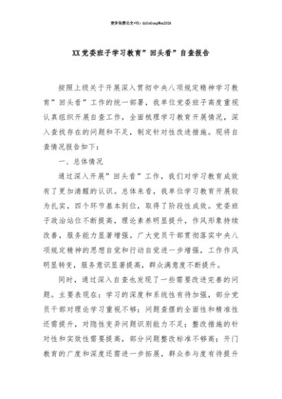 【七哥公文】2025年:【七哥公文】XX党委班子学习教育”回头看”自查报告+更多免费公文+VX:QiGeGongWen2024+更多免费公文+VX:QiGeGongWen2024